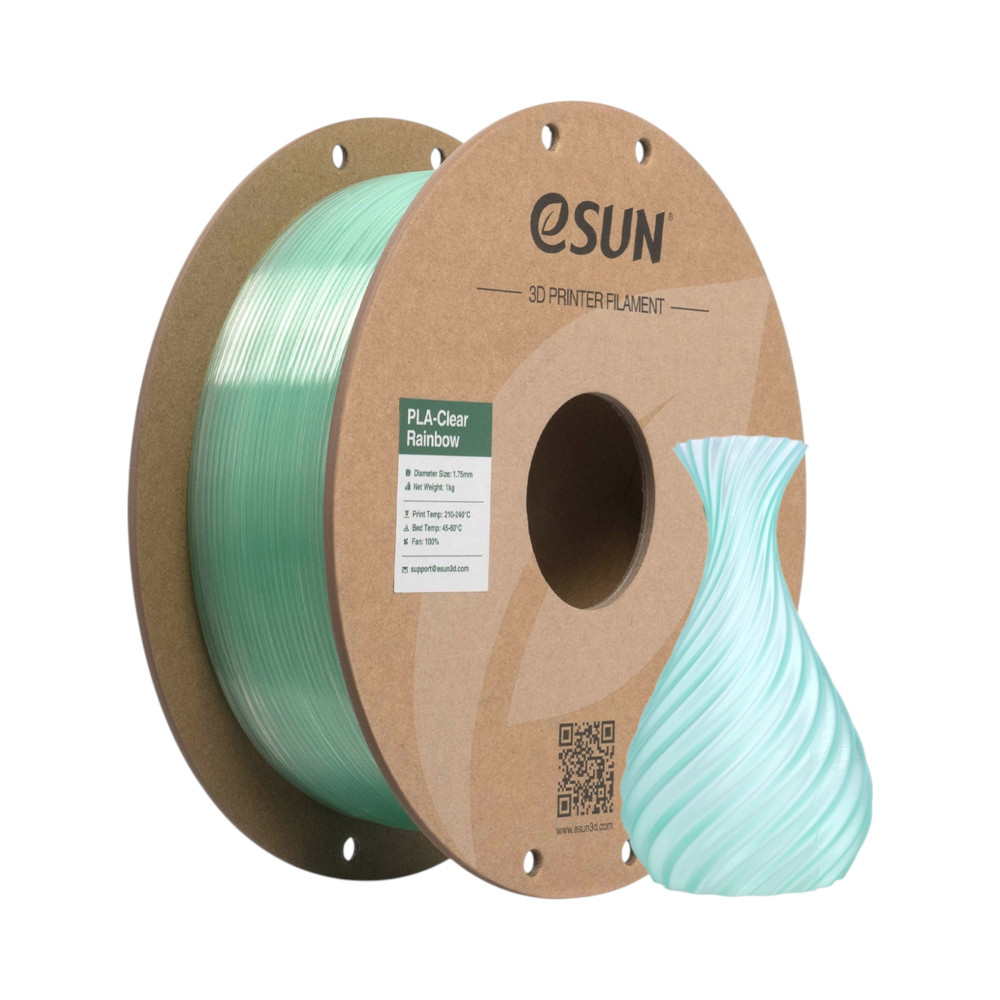 Das PLA-Clear Rainbow Filament von eSun vereint transparente Klarheit mit dezenten Farbverläufen. Un..
