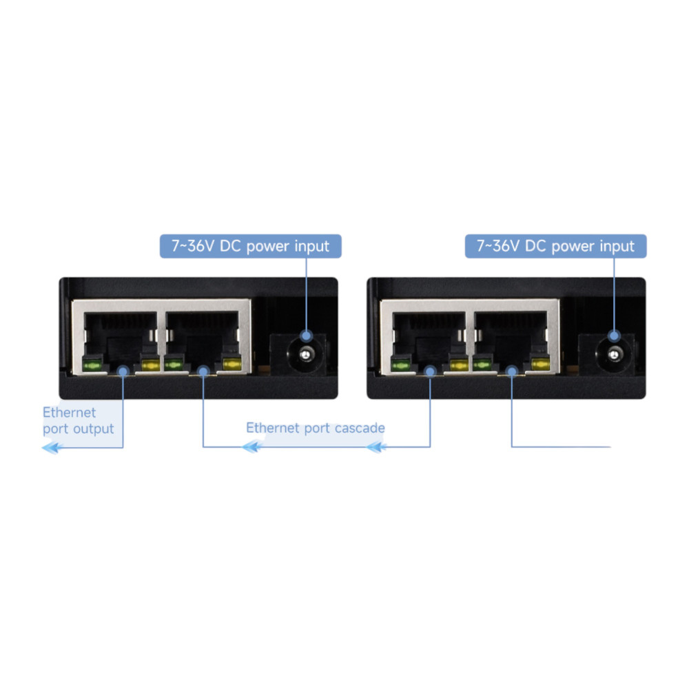 - Un Ethernet à double port facilite la mise en cascade de plusieurs modules.