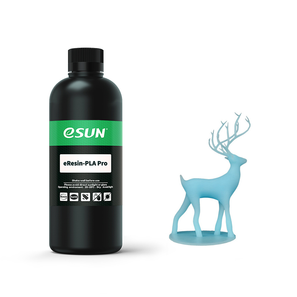eResin-PLA Pro Hellblau ist ein PLA Polyol synthetisiertes UV-Resin von eSun. Das Resin wird wie PLA aus organischen Stoffverbindungen hergestellt, und ist dadurch gegenüber herkömmlichem Resin sehr geruchsneutral. Das eResin-PLA Pro überzeugt mit hoher Festigkeit, Auflösung und ausgezeichnetem Preis-Leistungsverhältnis. Das Resin ist kompatibel mit Mono- und Mehrfarbigen Displays und eignet sich für kleine filigrane, sowie auch grössere Modelle gleichermassen. Mit dem Top Preis-Leistungsverhältnis und neutralem Geruch, empfehlen wir das eResin-PLA Pro als perfektes Einsteiger Resin, oder als den günstigen Allrounder für erfahrene im Resin Druck. eSun ist einer der grössten Hersteller von qualitativ hochwertigem Resin das für den 3D Druck eingesetzt wird.