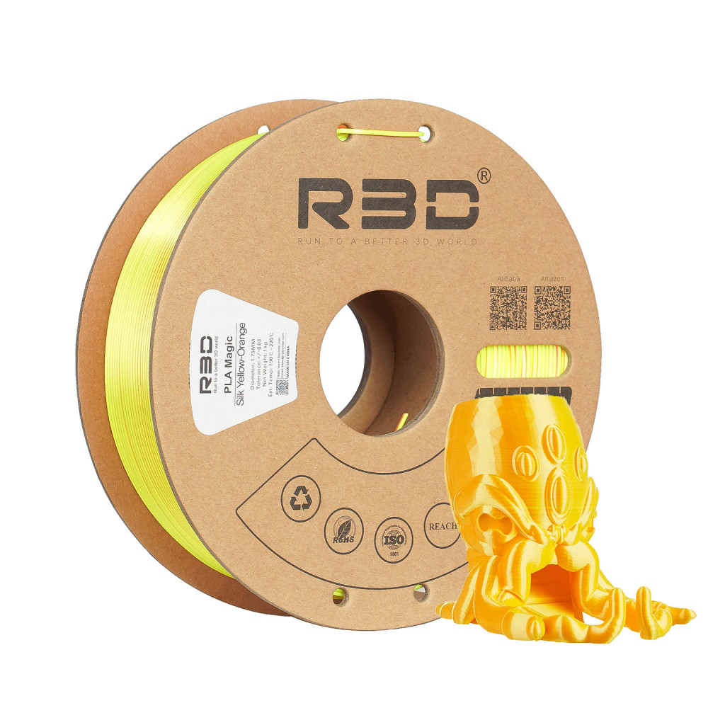 Tag: Magia, MagicPLA, eSilk-PLA, eSilk-Magic, ePLA-SilkMagic, ePLA, Seta, e-Seta, Filamento, PLA, 1kg, Stampante, Stampante 3D, FDM, Plastica, Lucido, Gioielli, Figure, Statue, Setoso, Oggetti d'arte, 3D, Stampante, Arte, Bicolore, Giallo, Arancione, r3d.