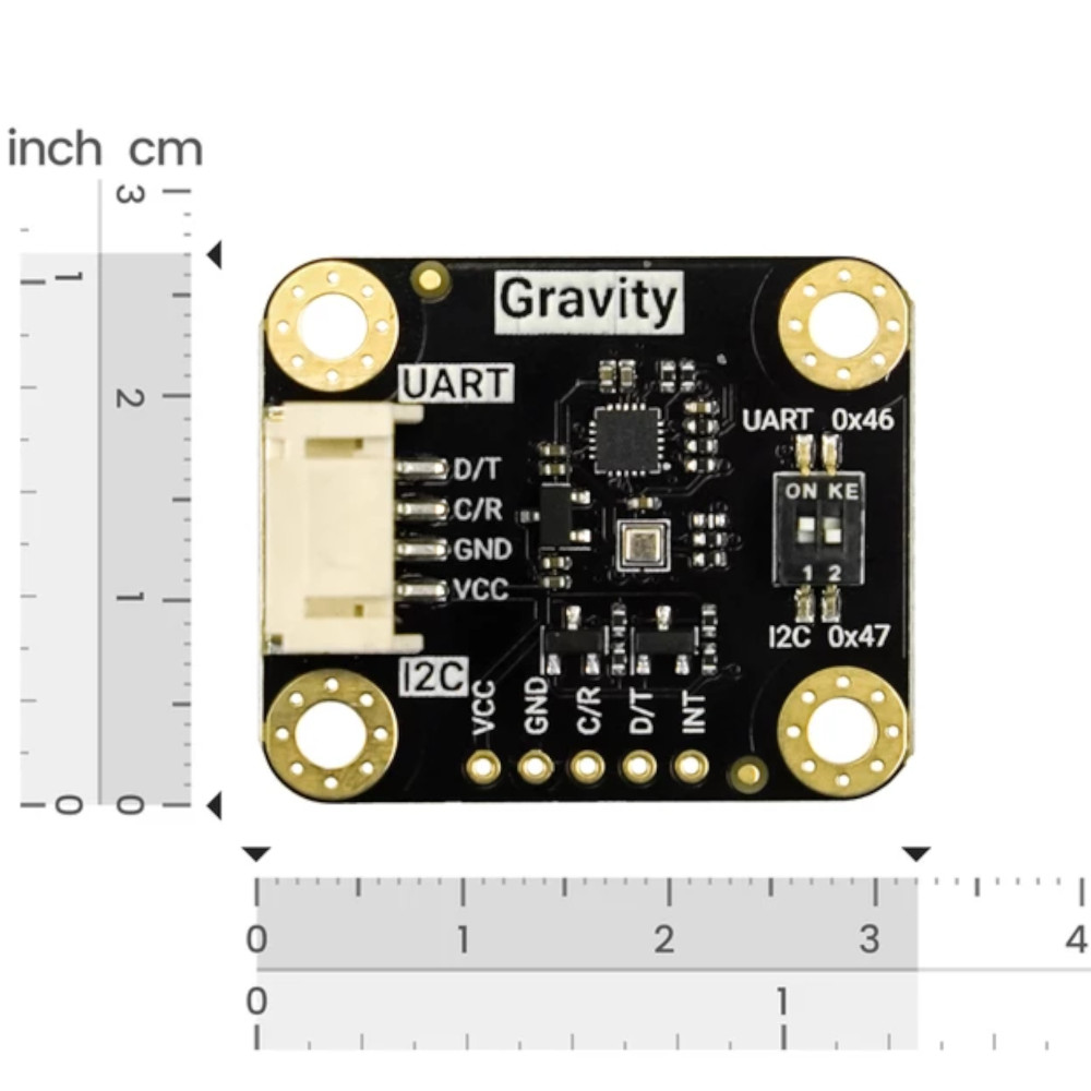 - Betriebsspannung 3.3–5 V mit integrierter Pegelanpassung; Gravity PH2.0-4P für Plug-and-Play mit Arduino, ESP32 und Raspberry Pi