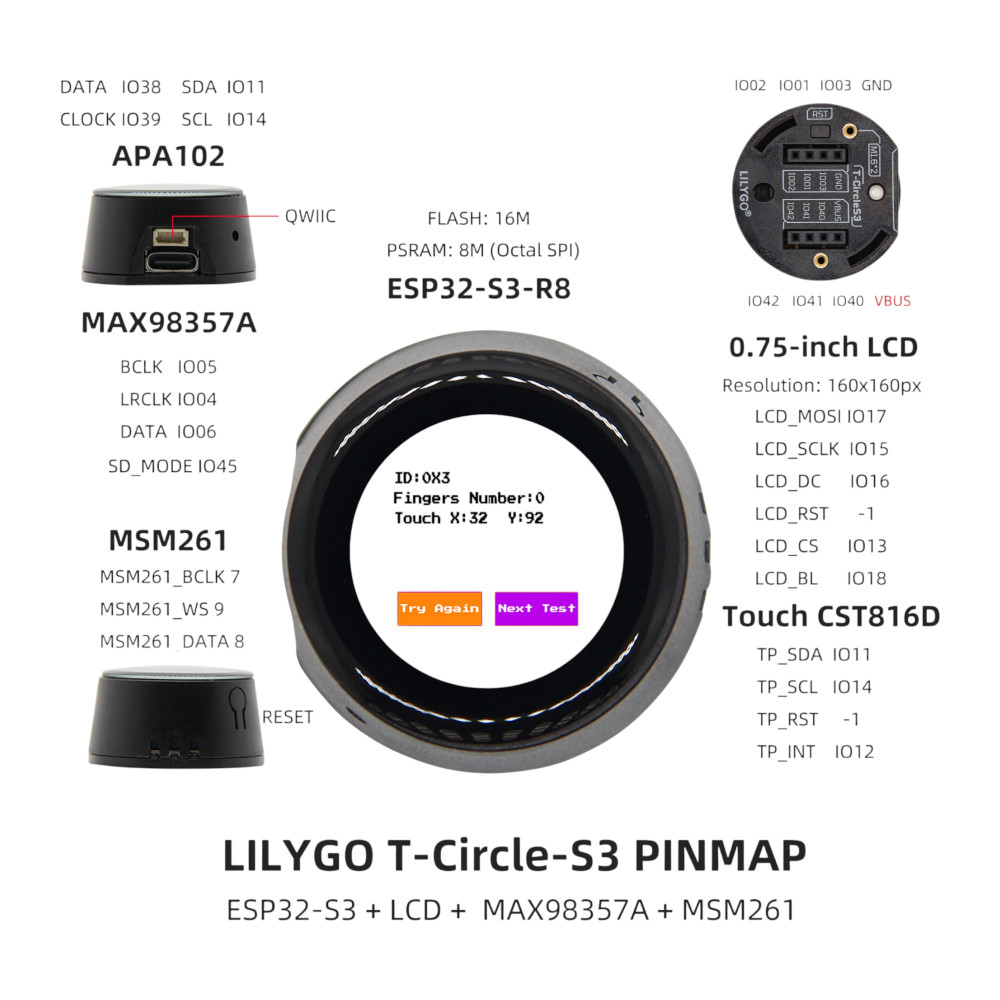 • 1 × LilyGo T-Circle S3 mit 0.75-Zoll Touch Display