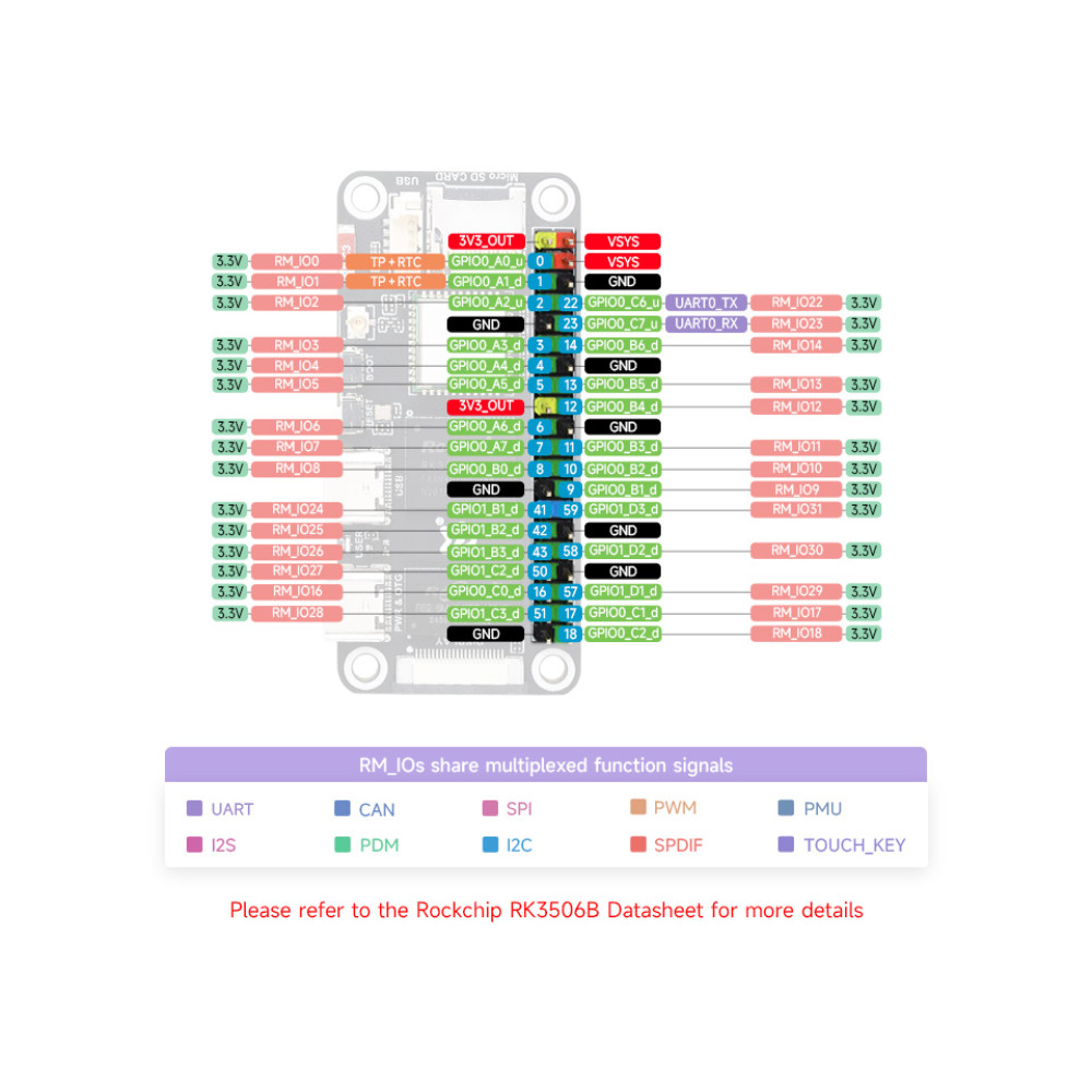 - Das Board basiert auf dem RK3506B mit Triple-Core Arm Cortex-A7 und Cortex-M0.