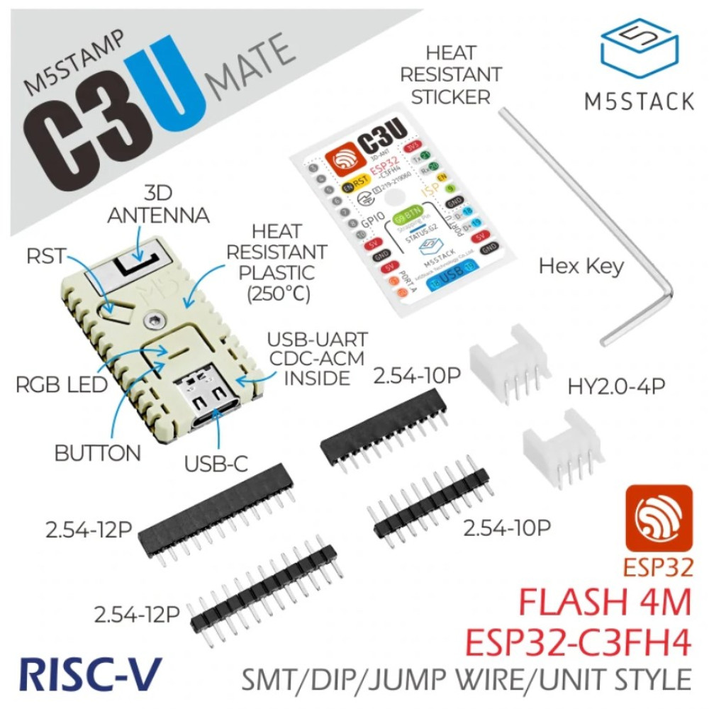Tags: M5Stamp, ESP32-C3, C3U, ESP32, ESPRESSIF, Bluetooth 5.0, 2.4GHz, WiFi, WLAN, Stamp, UIFlow, MicroPython, Arduino, Core, IOT, M5stack.