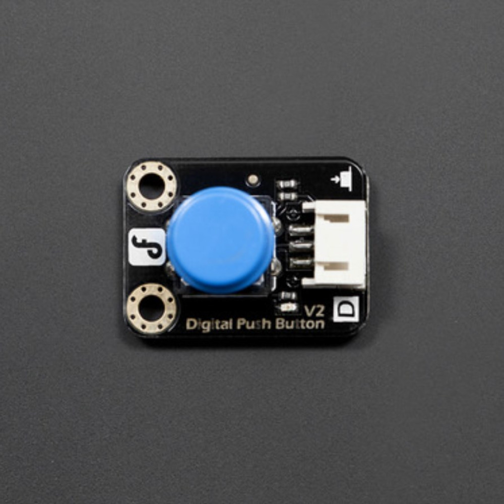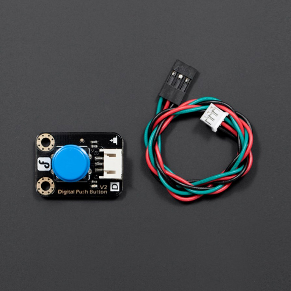 Ceci est un bouton-poussoir numérique de DFRobot. Le module dispose d'un connecteur Gravity et peut être utilisé avec un microcontrôleur 3.3V ou 5V comme Arduino ou ESP. Ce module bouton-poussoir est déjà équipé de résistances de pull-down, vous pouvez donc le connecter facilement à un Arduino ou Raspberry Pi. La LED intégrée, qui s'allume lorsque le bouton est pressé, est également pratique.