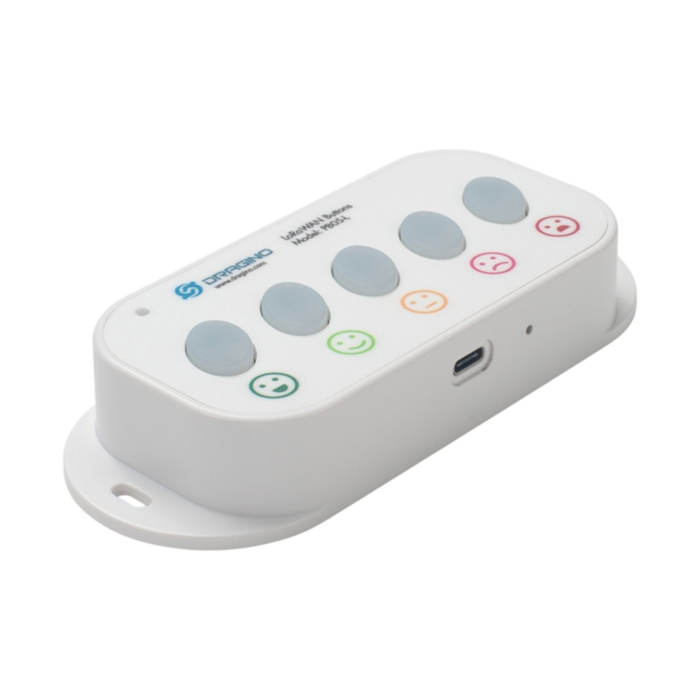 Il PB05-L di Dragino è un pulsante LoRaWAN versatile e a batteria con cinque tasti configurabili individualmente. Puoi assegnare a ogni tasto una funzione diversa, ad esempio per attivare segnali di allarme, controllare dispositivi smart home o inviare notifiche di stato. L'alloggiamento compatto rende il pulsante ideale per installazioni discrete in ambienti interni. Grazie alla tecnologia LoRaWAN puoi usare il PB05-L su lunghe distanze – perfetto per progetti IoT e di automazione. La configurazione avviene comodamente tramite downlink o via NFC con uno smartphone. Il LED integrato e un segnale acustico ti danno un feedback diretto dopo ogni pressione del tasto. Con una lunga durata della batteria fino a 2 anni, è particolarmente a bassa manutenzione. Il PB05-L è pienamente compatibile con le reti LoRaWAN comuni e si integra senza problemi nella tua infrastruttura esistente. Grazie alla sua struttura robusta è adatto anche per applicazioni industriali. L'antenna è integrata, quindi non è necessario alcun collegamento a un'antenna esterna. Puoi montare il pulsante direttamente al muro o usarlo portatile, a seconda delle esigenze.