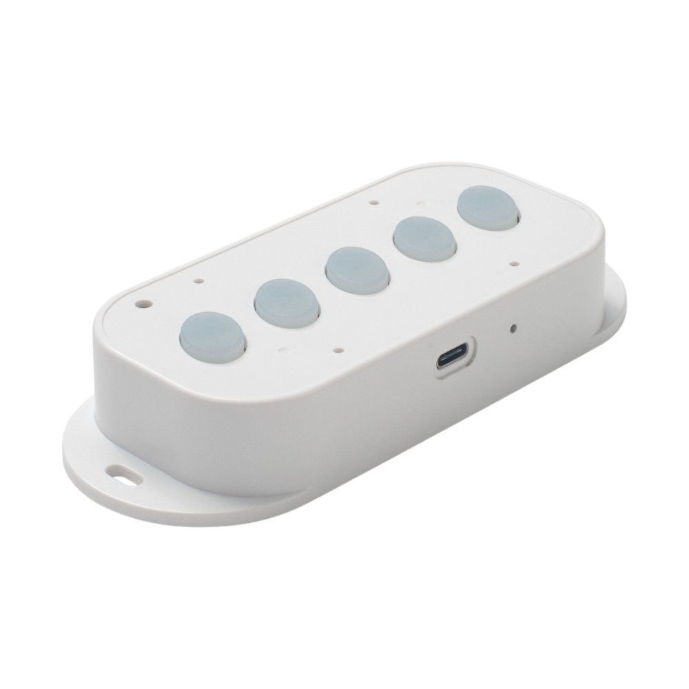 - Cinque tasti programmabili: Ogni tasto invia un segnale individuale quando premuto e può essere assegnato a funzioni specifiche tramite la piattaforma