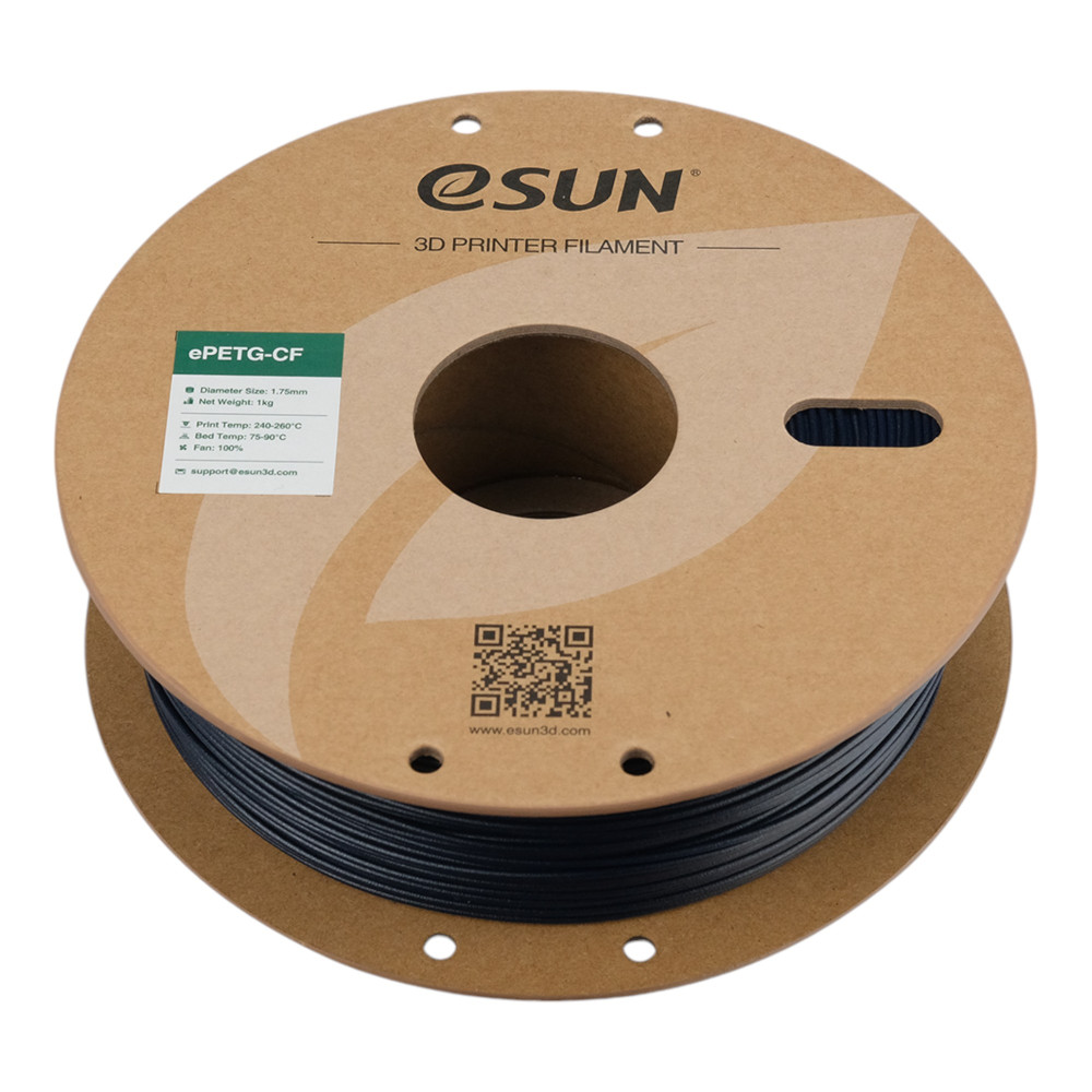 The ePETG-CF Carbon Dark Black Filament from eSun combines the excellent properties of PETG with add..