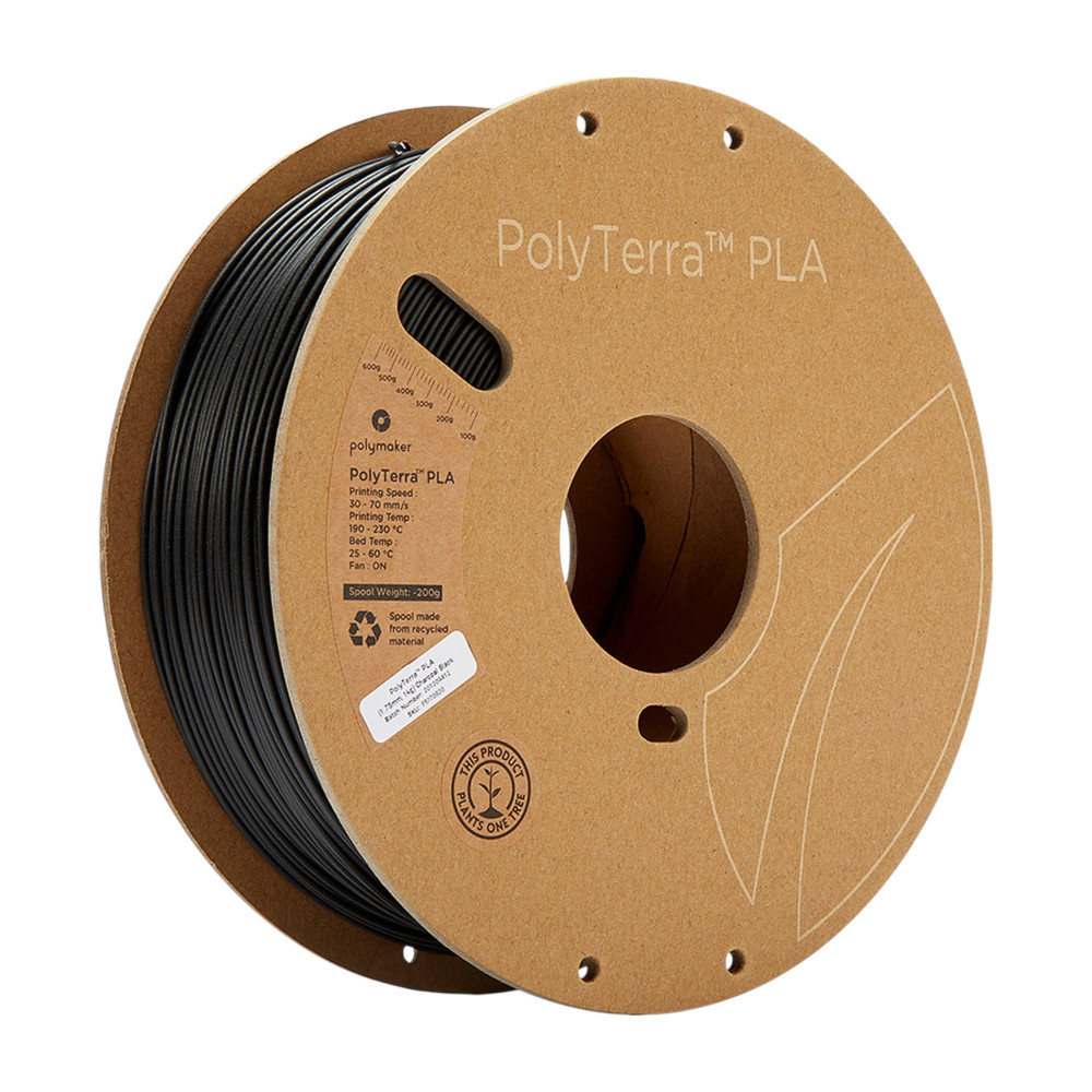 Tag: PolyTerra, PLA, Nero, Stampa 3D, Filamento, Polymaker, Bobina, 1.75 mm, 1 kg, opaco, Superficie, Sostenibilità, Biobased, Prototipi, Modelli, Decorazione, Qualità di stampa