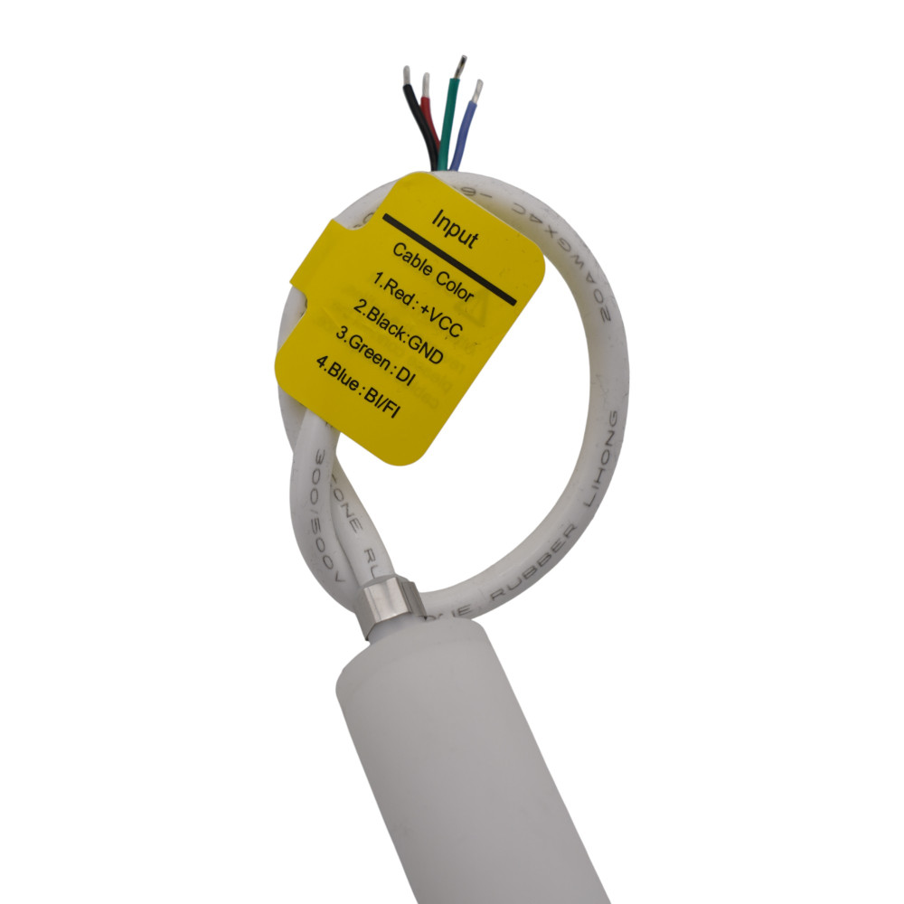 - Câble de connexion préassemblé avec code couleur (Rouge = VCC, Noir = GND, Vert = DI, Bleu = BI/FI)