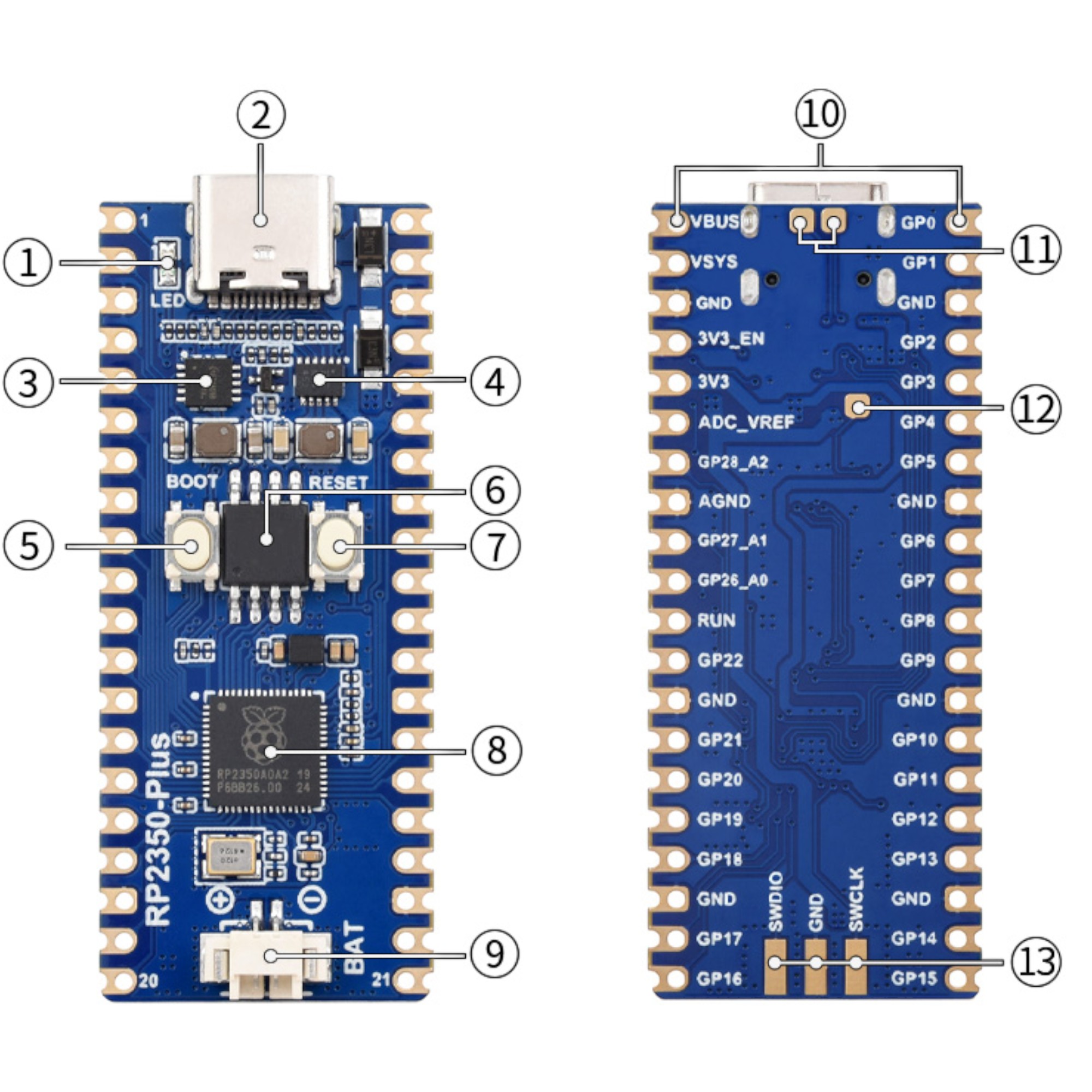 - RP2350A: Dual-Core- und Dual-Architektur-Design, bis zu 150 MHz Betriebsfrequenz