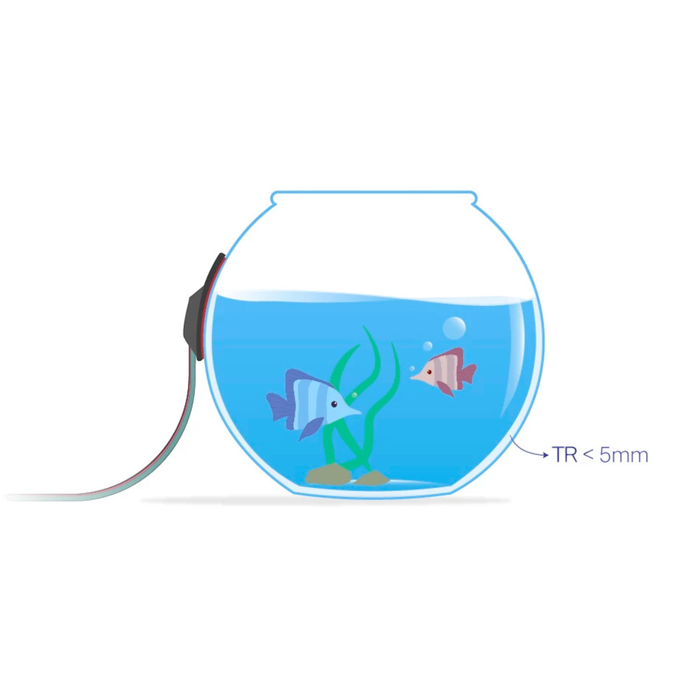 - Design flessibile con nastro adesivo 3M consente l'installazione su superfici piane e curve di contenitori non conduttivi