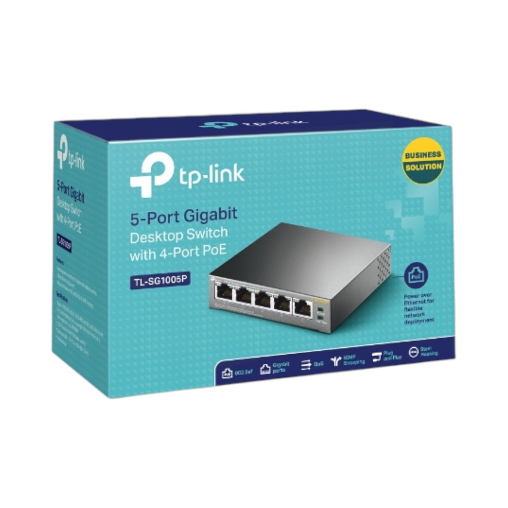 - 1× TP-Link TL-SG1005P 5-Port Gigabit PoE+ Switch 65 W
