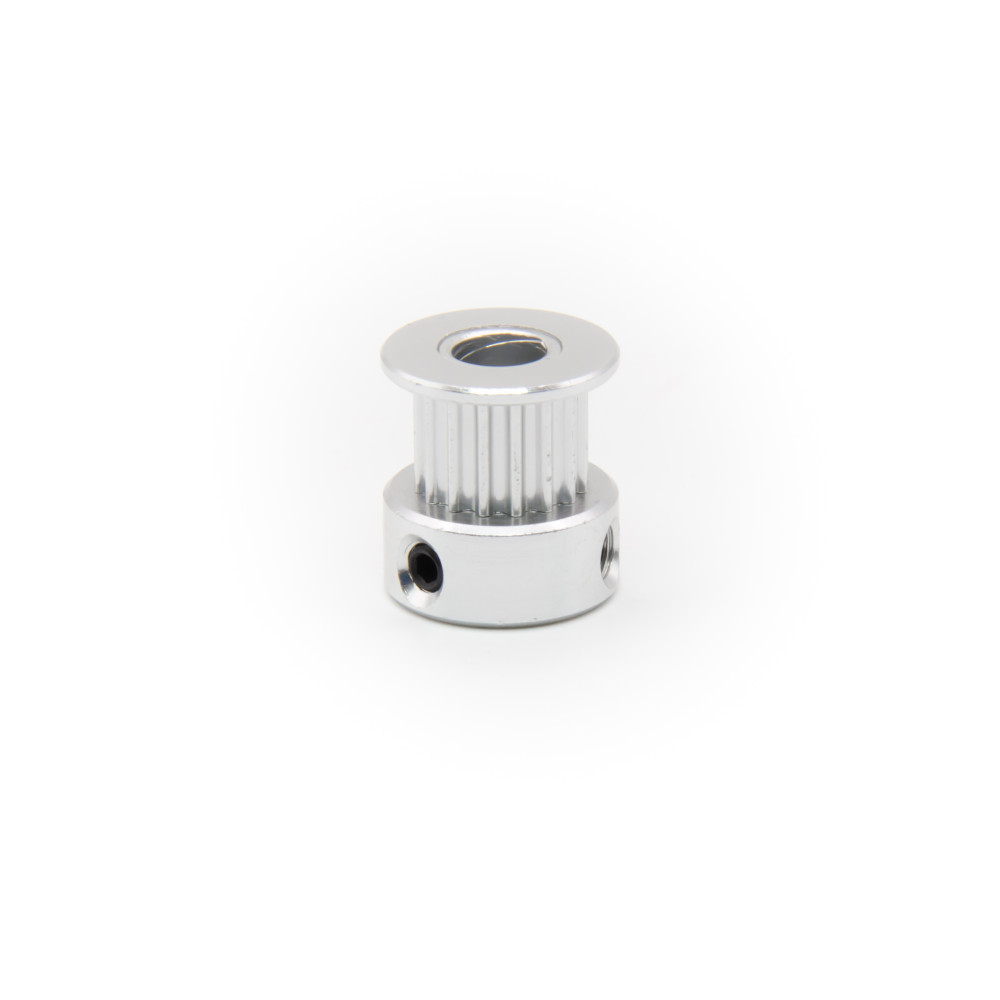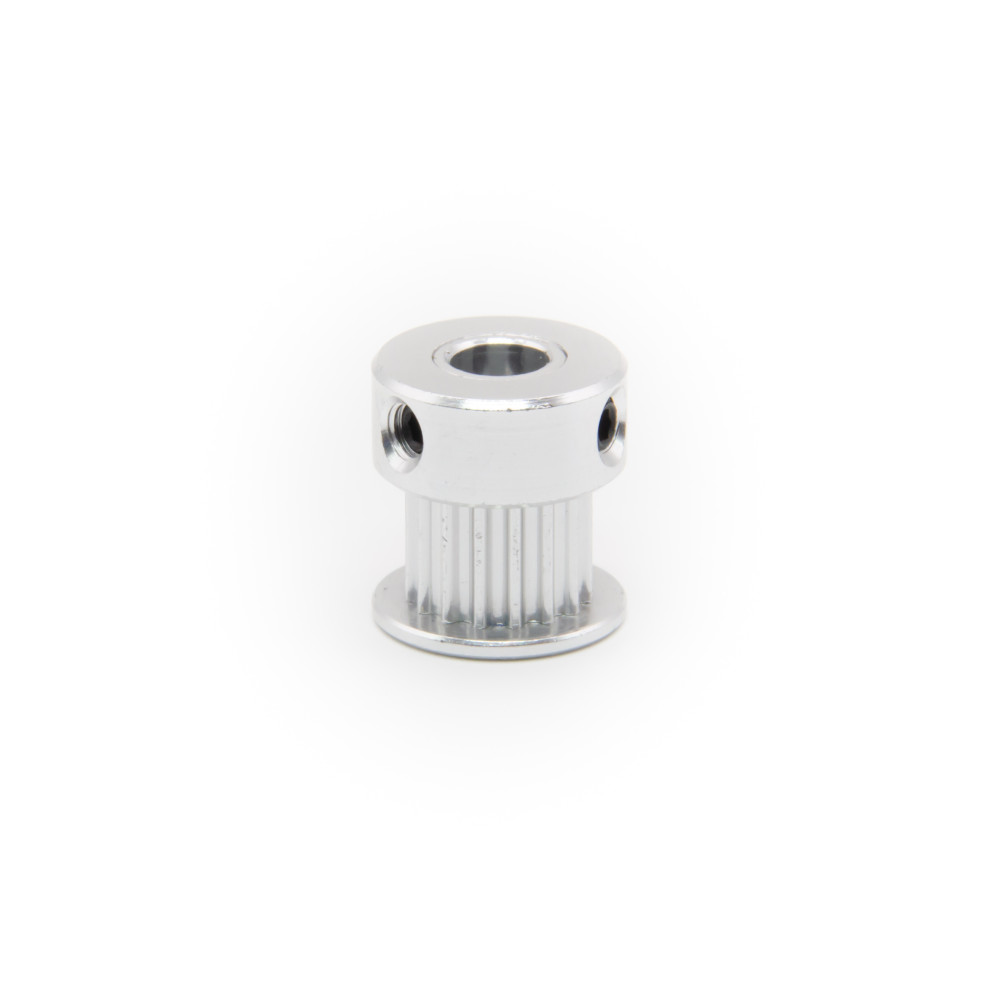 Diese GT2 Riemenscheibe hat 16 Zähne und eine Durchgangsbohrung mit 5mm Innendurchmesser. Auf diese Scheibe passt unser 6mm GT2 Riemen. Mit zwei M3 Schrauben kann die Scheibe auf einer 5mm Welle fixiert werden. Das GT2 Profil bietet einige Vorteile gegenüber herkömmlichen Profilen. Die abgerundeten Zähne sorgen durch Formschlüssigkeit für minimales Spiel bei linearer Bewegung. Dadurch eignet sich dieses Profil besonders gut für häufige Richtungswechsel, wie zum Beispiel bei einem 3D-Drucker.